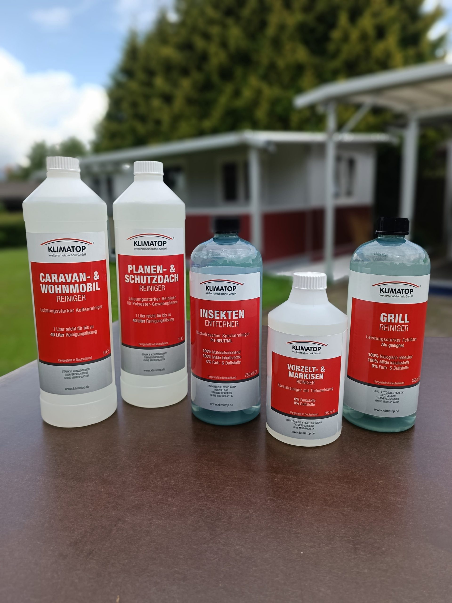Der kraftvolle Spezialreiniger für alle Planen unserer Schutzdächer – gründlich, effektiv und schonend.